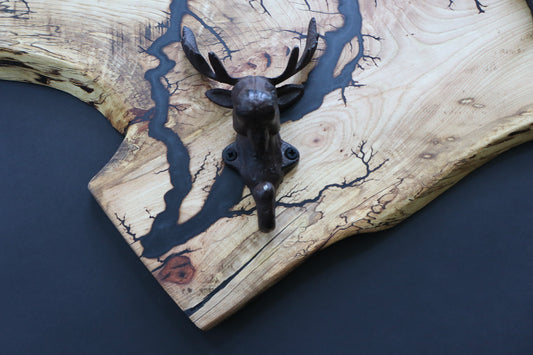 Hickory Coat Rack with Moose Hooks