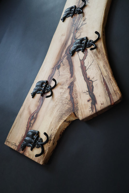 Hickory Wood with Bear Hooks Coat Rack