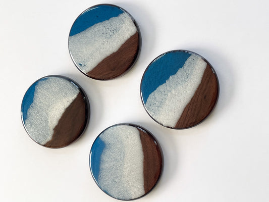 Blue Ocean Theme Coaster (Walnut Wood)