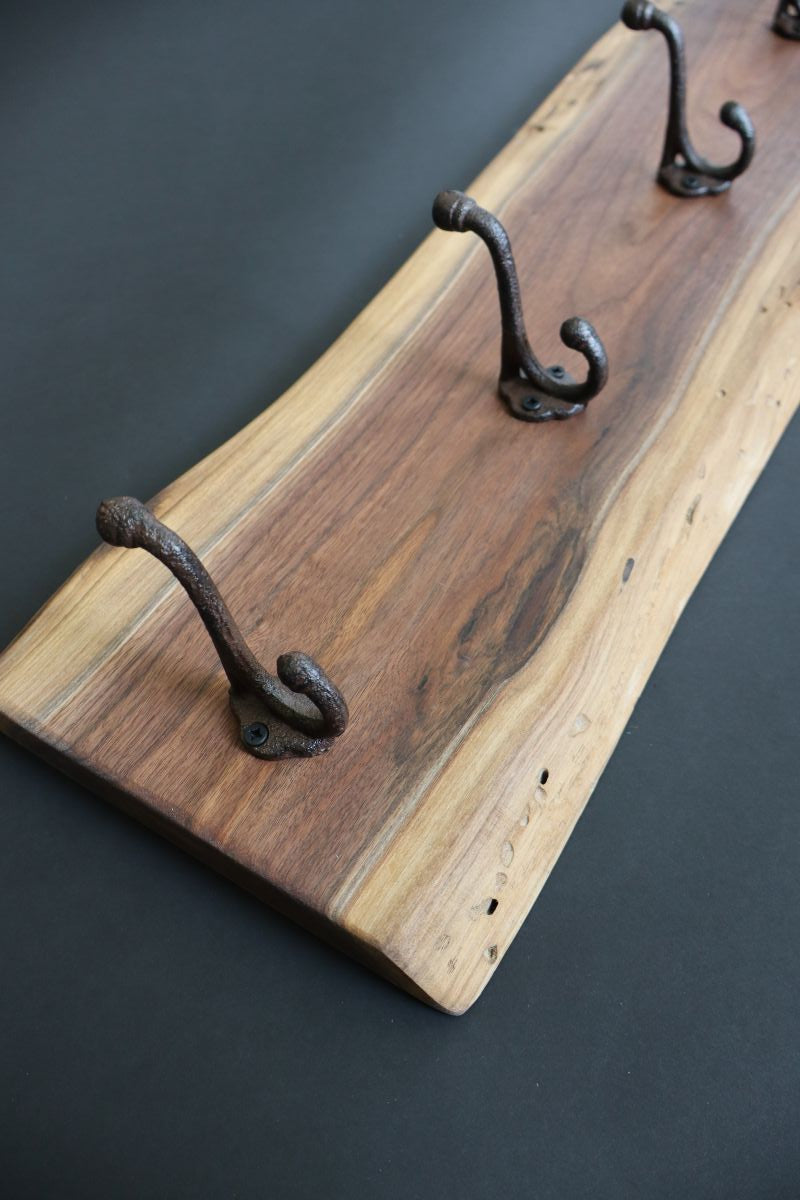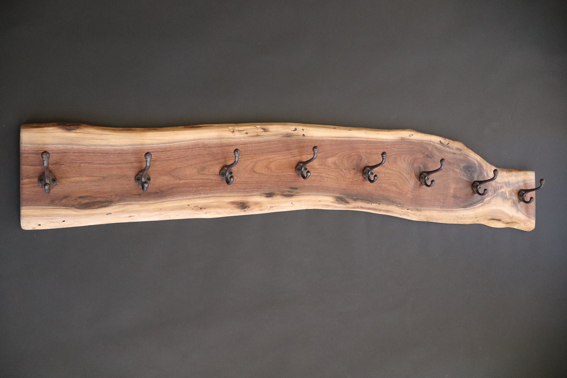Handcrafted from a single slab of premium black walnut, this coat rack captures the essence of natural elegance. Known for its rich chocolate-brown heartwood, lighter sapwood accents, and intricate grain patterns, black walnut is prized for both its beauty and durability. The live-edge design preserves the organic lines of the tree, making each piece truly one of a kind.