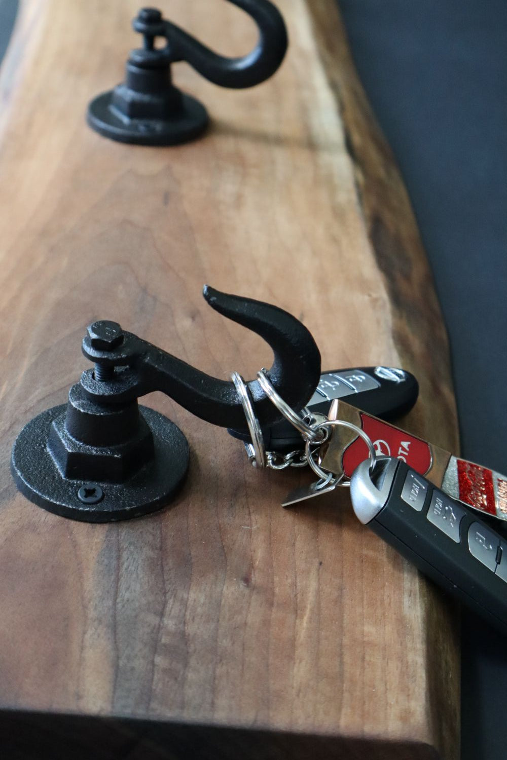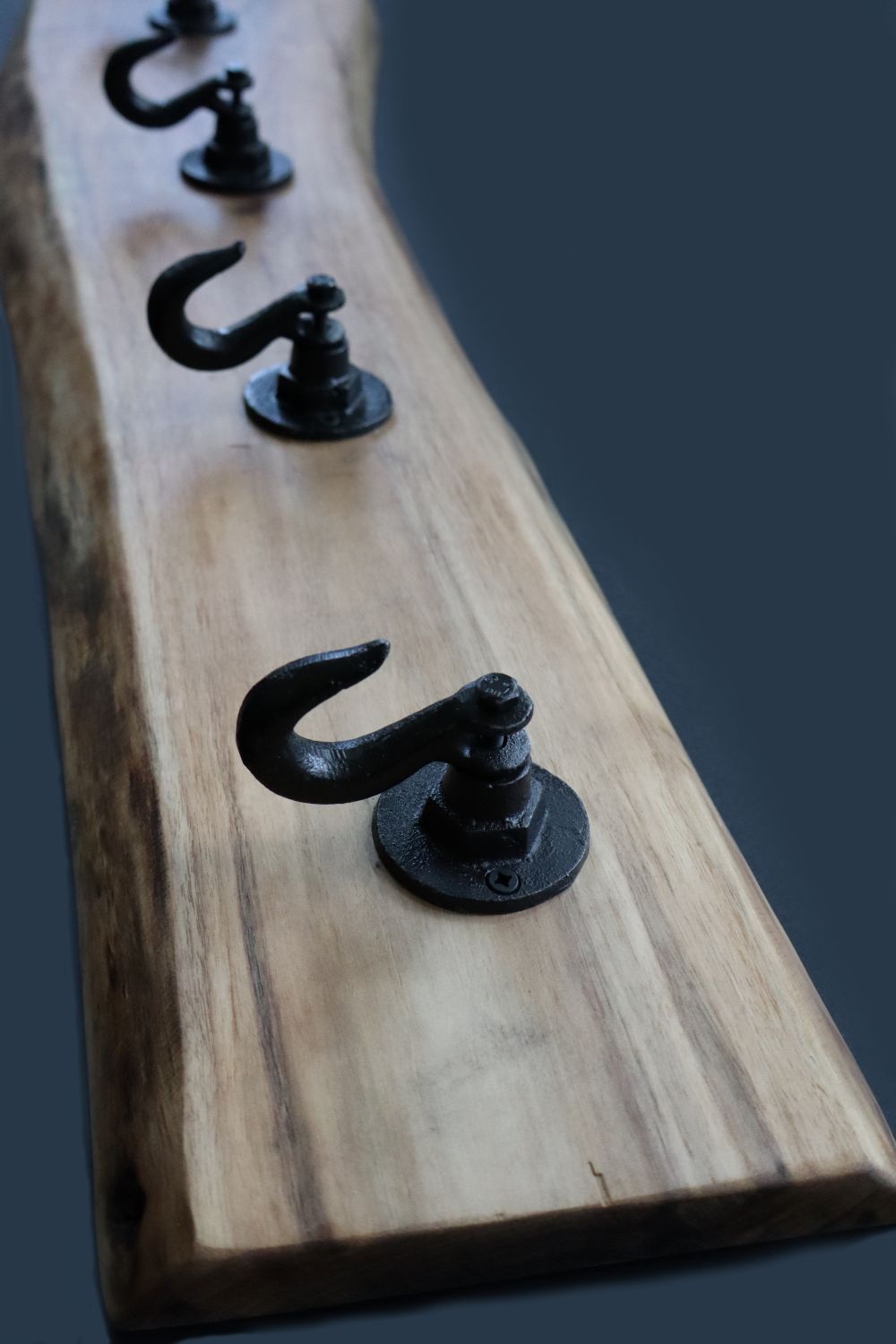 Handcrafted Black Walnut Coat Rack – 36” Live Edge with 4 Cast Iron Hooks