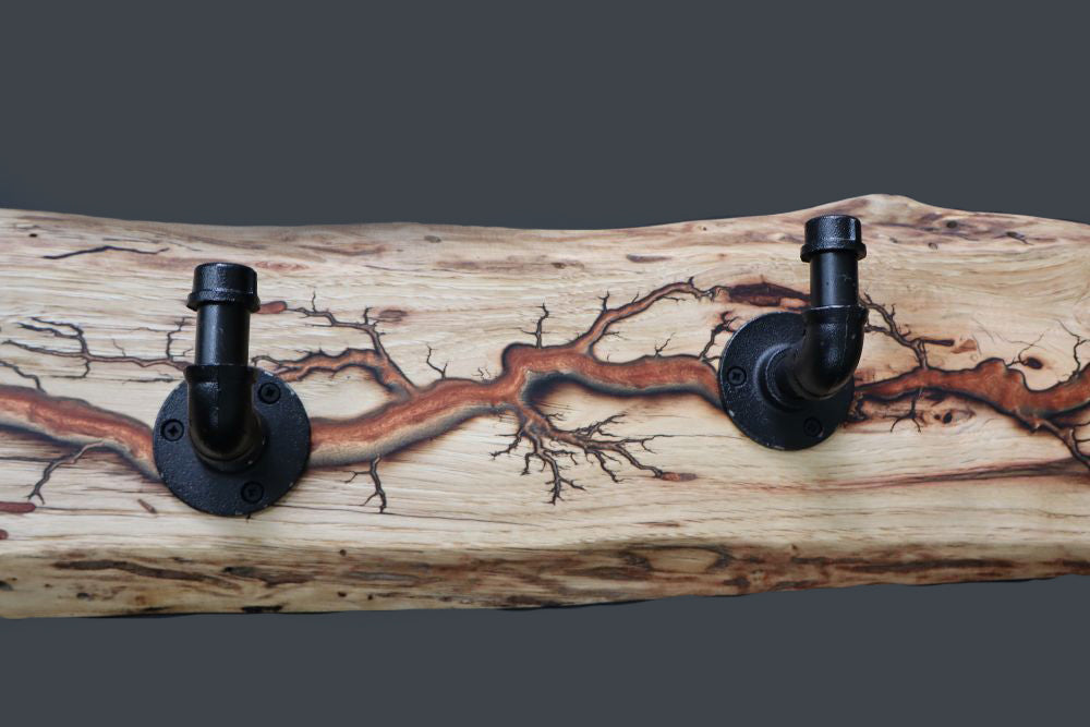 Rustic Hickory Coat Rack – Handmade Fractal Burn Wall Hook